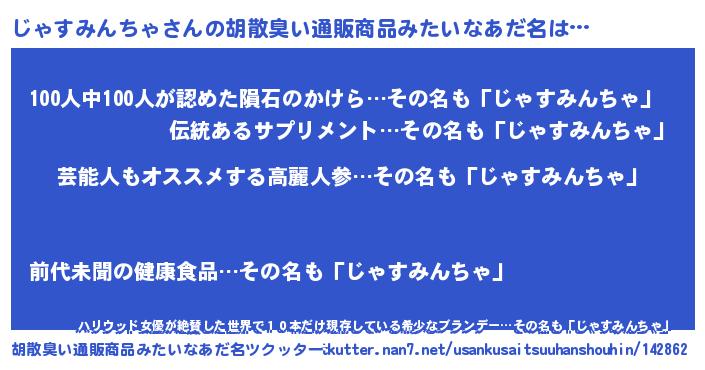 | ヘコむあだ名 | 『じゃ太郎』『じゃすみんちゃ(震え声)』 |