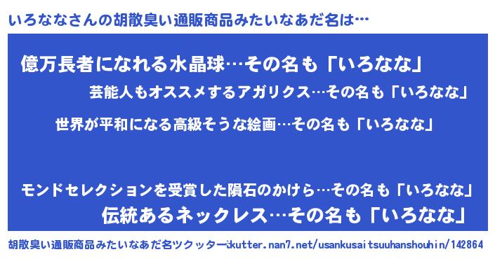 | ヘコむあだ名 | 『なまこ酢』『いろっふぃ~』 |