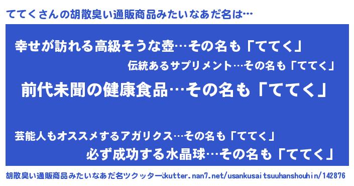 | ヘコむあだ名 | 『ててく(爆)』『酢こんぶ』 |