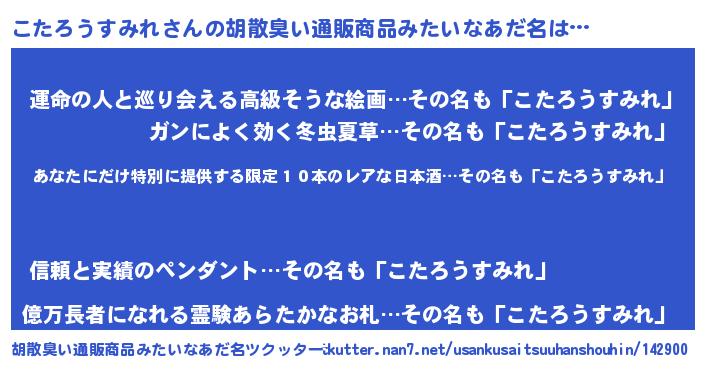 | 意味不明あだ名 | 『住所不定無職こたろうすみれ(50歳)』 |