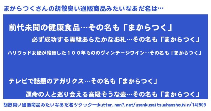 | 料理風あだ名 | 『まからつくのカルパッチョ風』 |