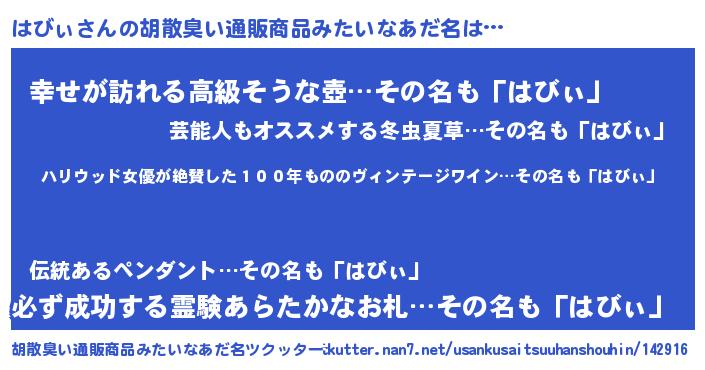 はびぃさんの胡散臭い通販商品みたいなあだ名をツクッター!