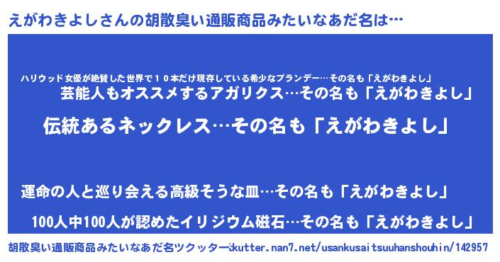 | 意味不明あだ名 | 『とにかく怪しいえがわきよし』 |