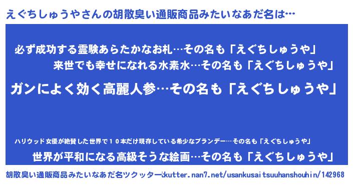 えぐちしゅうやさんの胡散臭い通販商品みたいなあだ名をツクッター!
