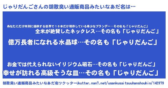 | 男性向けラノベタイトル風あだ名 | 『ジャリダンゴアートオンライン』 |
