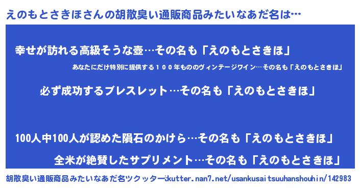 | 男性向けラノベタイトル風あだ名 | 『えのもとさきほの憂鬱』 |