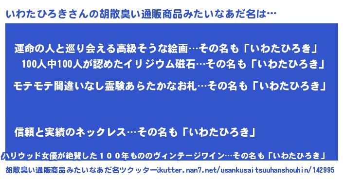| ヘコむあだ名 | 『いわもー』『豆乳』『いわ太郎』 |