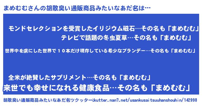 | 男性向けラノベタイトル風あだ名 | 『この素晴らしい世界にまめむむを!』 |