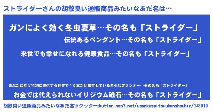 | 男性向けラノベタイトル風あだ名 | 『はたらくストライダーさま!』 |