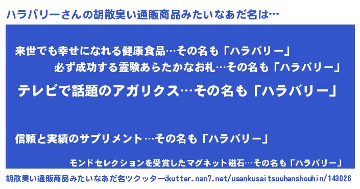 | ヘコむあだ名 | 『ハラバリー(爆)』『ハラもー』 |