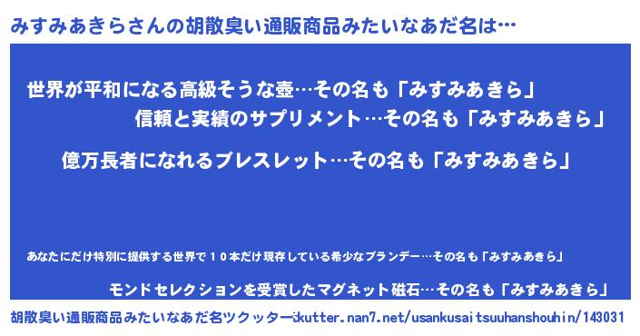 | 肩書あだ名 | 『みすみあきら社長』『みすみあきら艦長』 |