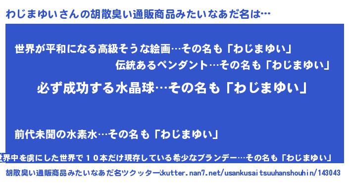 | ファンタジー風あだ名 | 『ワジフェル』『エターナルワジマユイー』 |