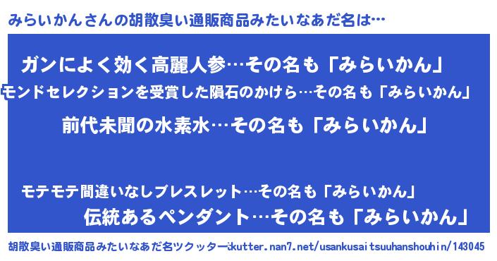 | 意味不明あだ名 | 『永久保存みらいかん』『自称みらいかん』 |
