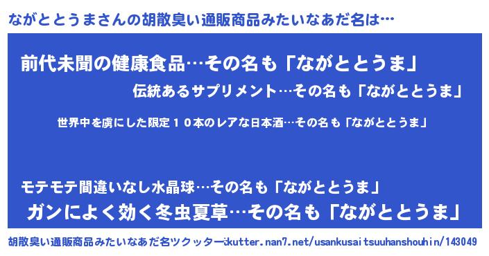 | 意味不明あだ名 | 『住所不定無職ながととうま(56歳)』 |