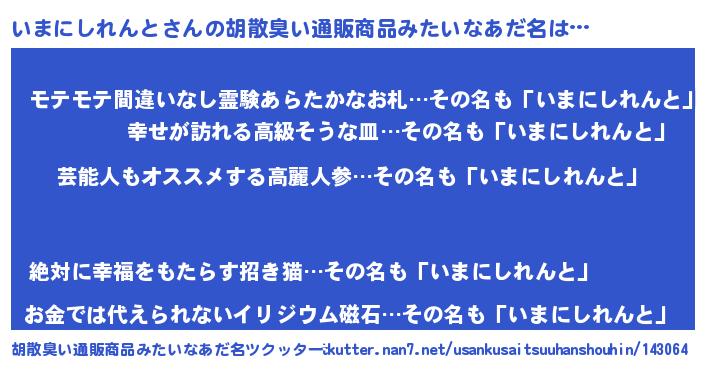 | 意味不明あだ名 | 『自称いまにしれんと』 |