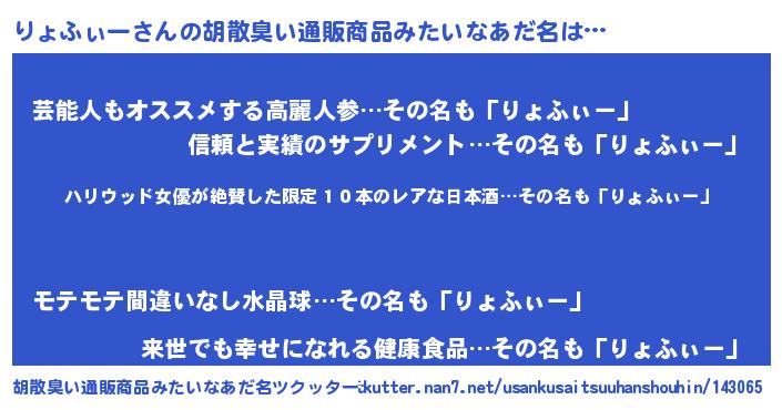 | ヘコむあだ名 | 『りょふぃー(苦笑)』『りょを』 |