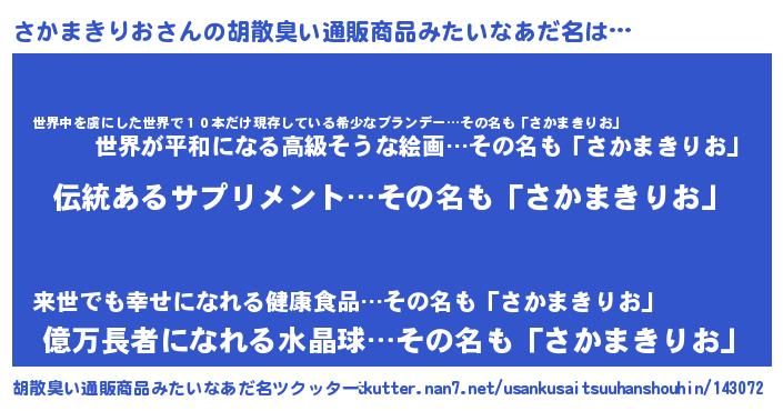 | 意味不明あだ名 | 『とにかく怪しいさかまきりお』 |