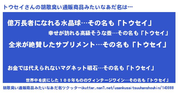 | 欧米人風あだ名 | 『トリンドルトウセイ』 |