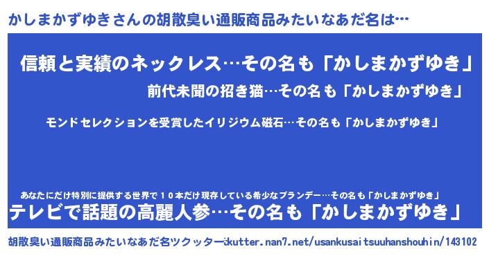 | 意味不明あだ名 | 『眠気覚ましガムかしまかずゆき味』 |