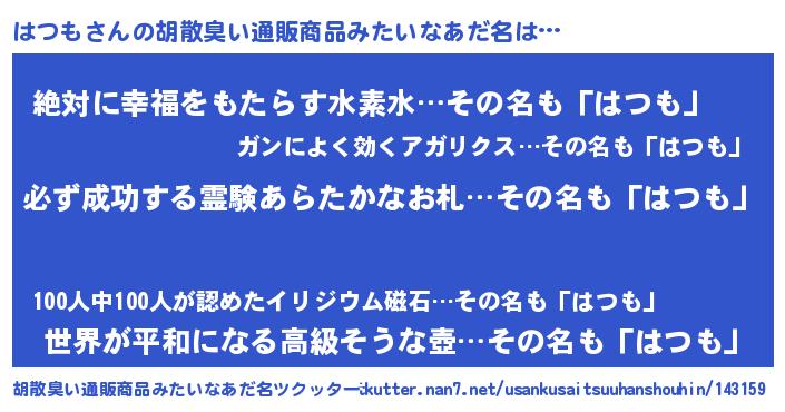 | 意味不明あだ名 | 『ペロリンはつも』『永久保存はつも』 |