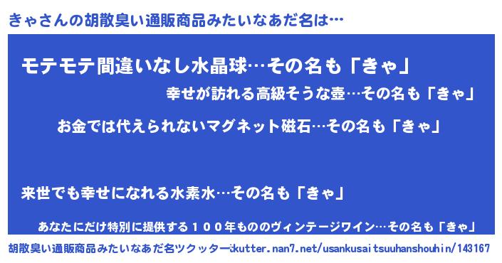 | ヒーロー風カッコイイあだ名 | 『慈愛の使者きゃ』『スーパーキャ』 |