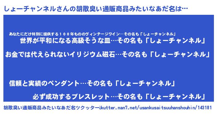 | 肩書あだ名 | 『しょーチャンネル艦長』 |