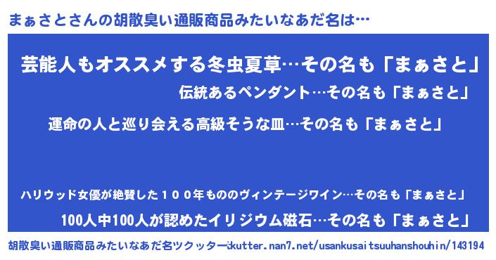 | ヘコむあだ名 | 『酢こんぶ』『まぁっぺ』 |