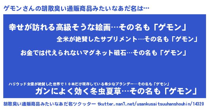| 男性向けラノベタイトル風あだ名 | 『転生したらゲモンだった件』 |