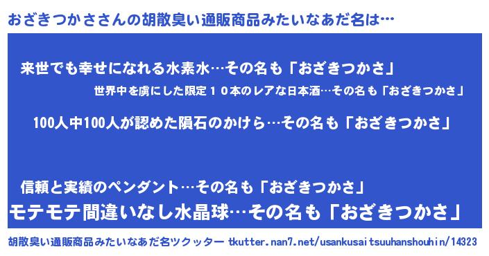 | ヘコむあだ名 | 『おざきつかさ(遠い目)』『おざにゅー』 |