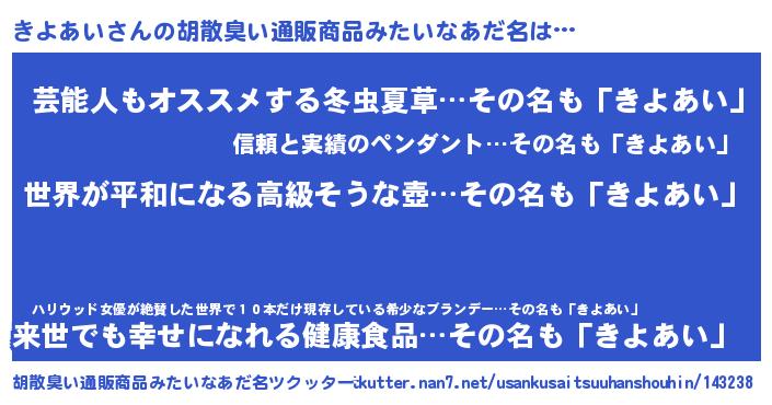 | 欧米人風あだ名 | 『きよあいクリステル』 |