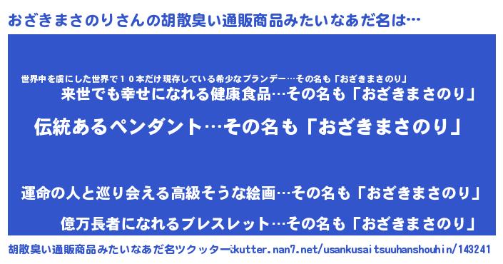 | 意味不明あだ名 | 『とにかく怪しいおざきまさのり』 |