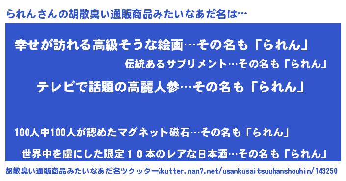 | 意味不明あだ名 | 『自称られん』『られんフォーエバー』 |