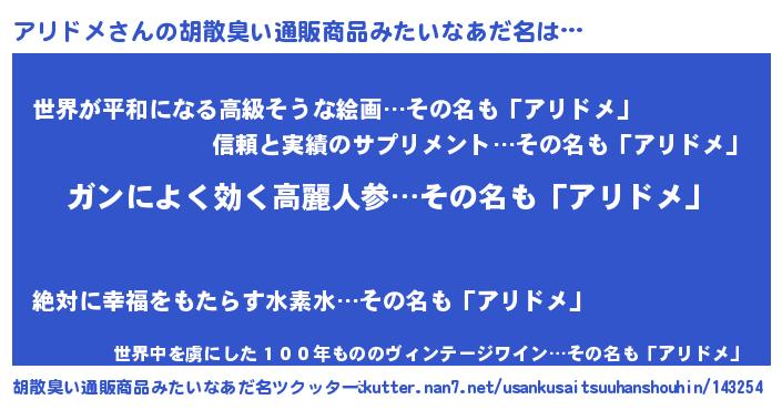 | 意味不明あだ名 | 『自称アリドメ』『アリドメフォーエバー』 |