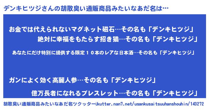 | ヘコむあだ名 | 『デンもー』『デンキヒツジ(笑)』 |