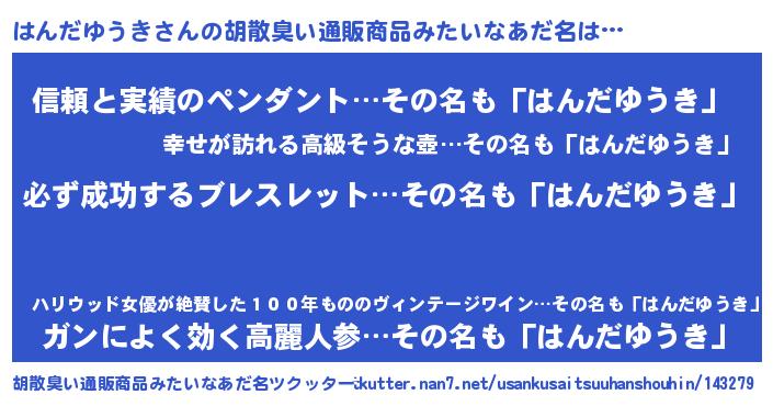 | 恥ずかしいあだ名 | 『プリティーはんだゆうき』『はんっちょ』 |