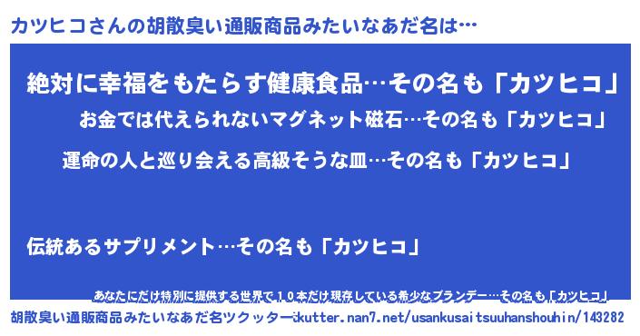 | 意味不明あだ名 | 『ニラ科カツヒコ属』『永久保存カツヒコ』 |