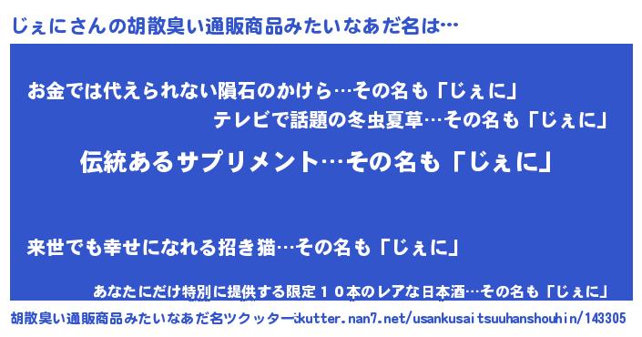 | ヘコむあだ名 | 『じぇ太郎』『じぇに(震え声)』 |
