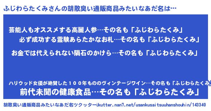 | ヘコむあだ名 | 『ふじわらたくみ(震え声)』『ふじにー』 |