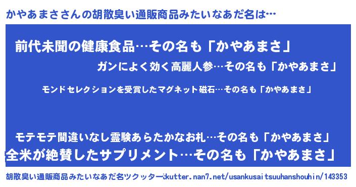 | ヘコむあだ名 | 『かやあまさ(小並感)』『かやっ子』 |