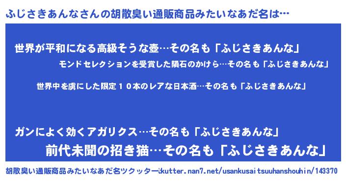 | 意味不明あだ名 | 『住所不定無職ふじさきあんな(65歳)』 |