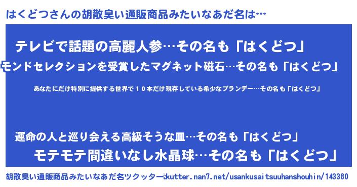 はくどつさんの胡散臭い通販商品みたいなあだ名をツクッター!