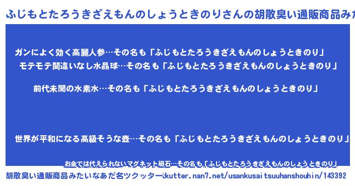 | 意味不明あだ名 | 『永久保存ふじもとたろうきざえもんのしょうときのり』 |