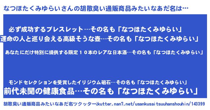 | ヘコむあだ名 | 『なつもー』『なつほたくみゆらい(笑)』 |