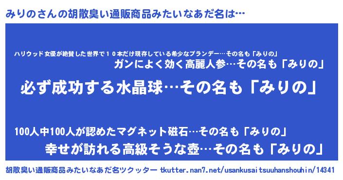 | ヘコむあだ名 | 『みりふぇ~』『つくし』『みり太郎』 |