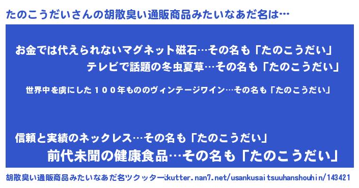 | 欧米人風あだ名 | 『ダレノガレたのこうだい』 |