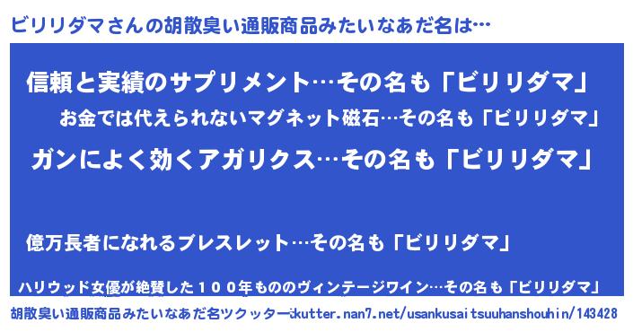 | ヒーロー風カッコイイあだ名 | 『超時空戦士ビリリダマ』『暗黒騎士ビリ』 |