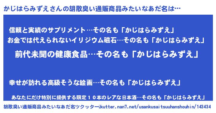 | 意味不明あだ名 | 『永久保存かじはらみずえ』 |