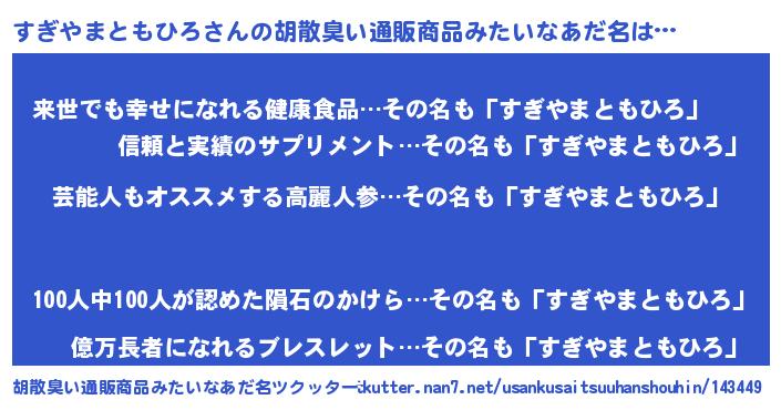 | ヘコむあだ名 | 『すぎやまともひろ(笑)』『すぎっふぃ~』 |