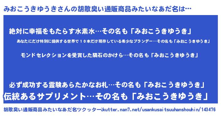 | 欧米人風あだ名 | 『みおこうきゆうき・ステッグマイヤー』 |