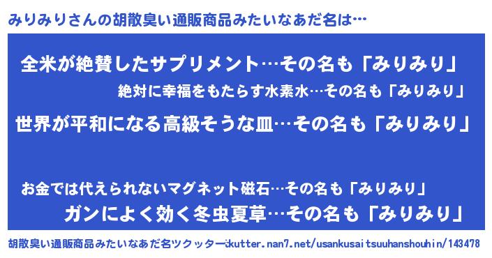 | ヘコむあだ名 | 『なまこ酢』『みりぷりん』 |